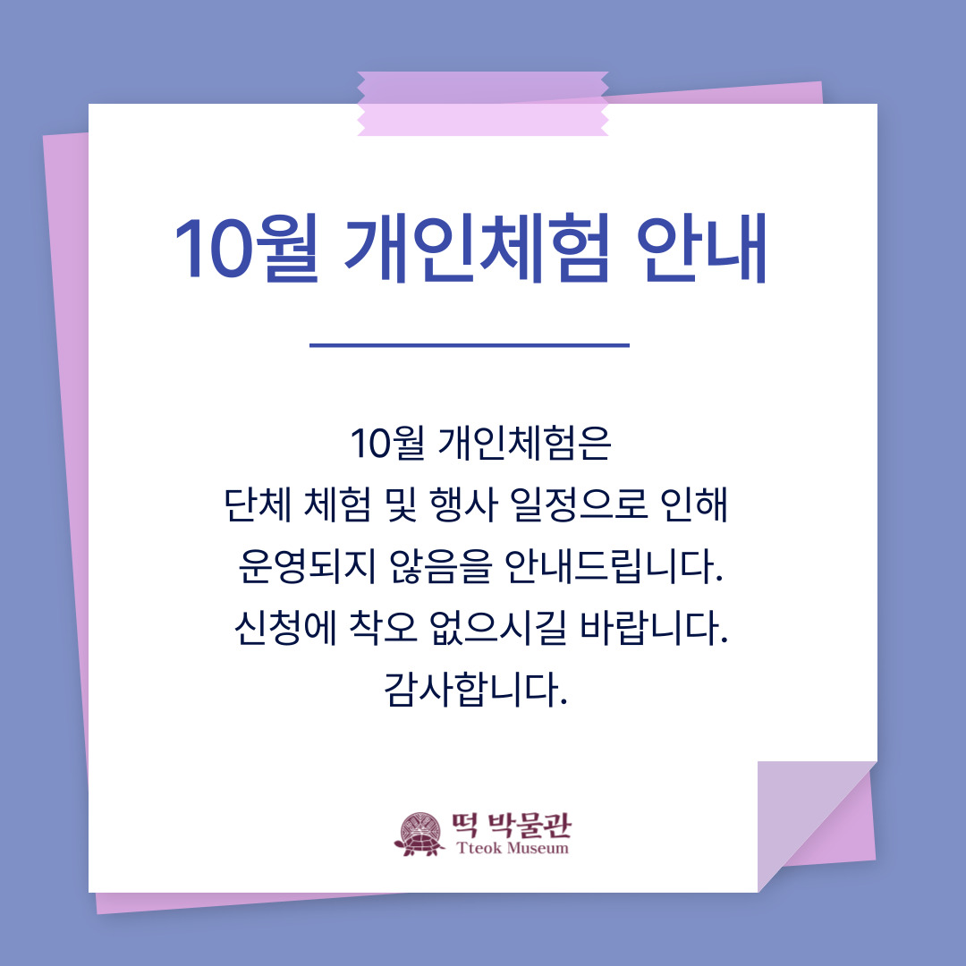 10월 개인체험 안내