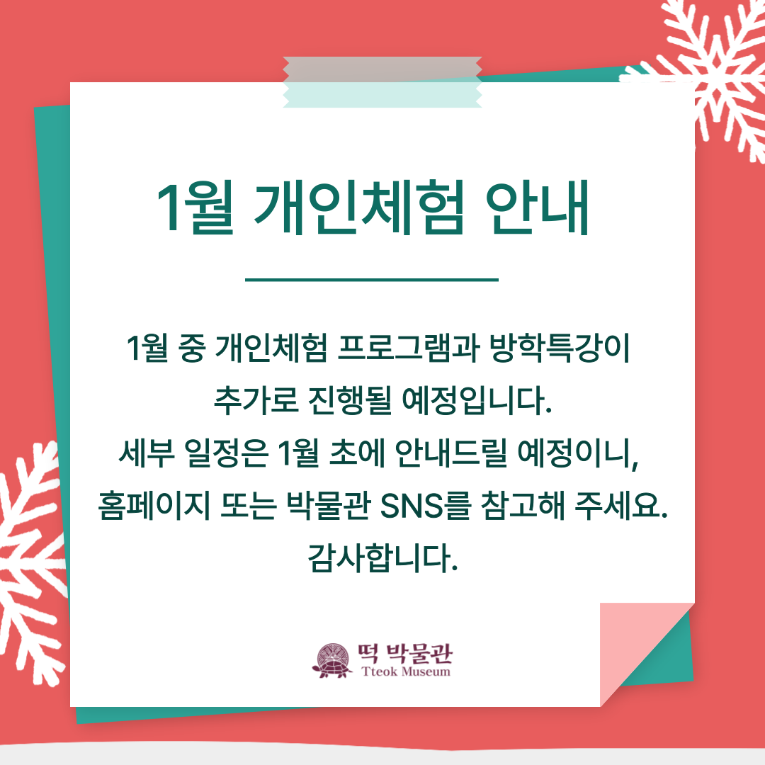 1월 개인체험 안내
