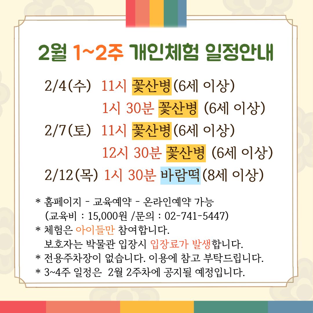 (보호자께서 박물관을 입장하시는 경우 입장료가 발생합니다.)