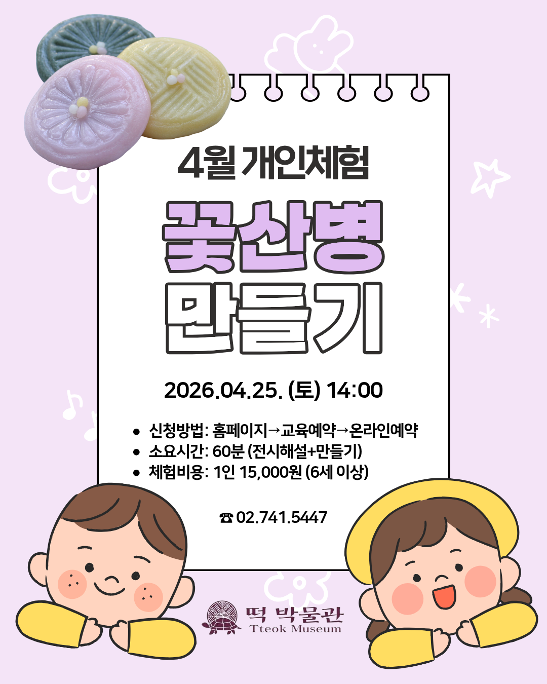* 교육비는 현장 결제입니다.* 체험은 아이들만 참여합니다.* 보호자께서는 박물관 전시 해설에 함께 참여하실 수 있습니다. (다만, 입장 시 박물관 관람·입장료 3,000원이 별도로 발생합니다.)* 전용 주차장이 없으니 방문 시 참고 부탁드립니다.* 취소는 전화로 부탁드립니다.