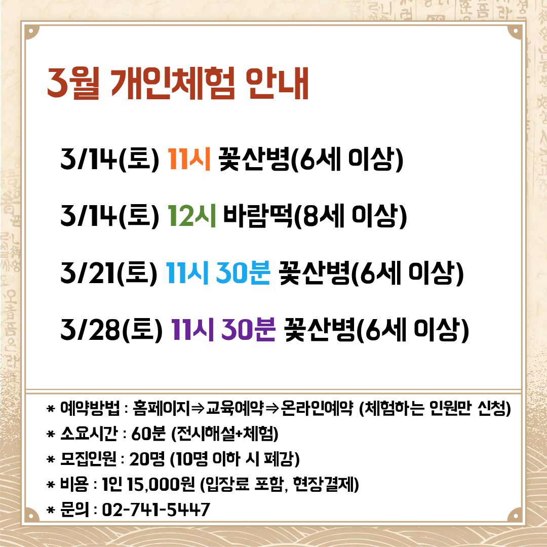 3월 개인체험 안내